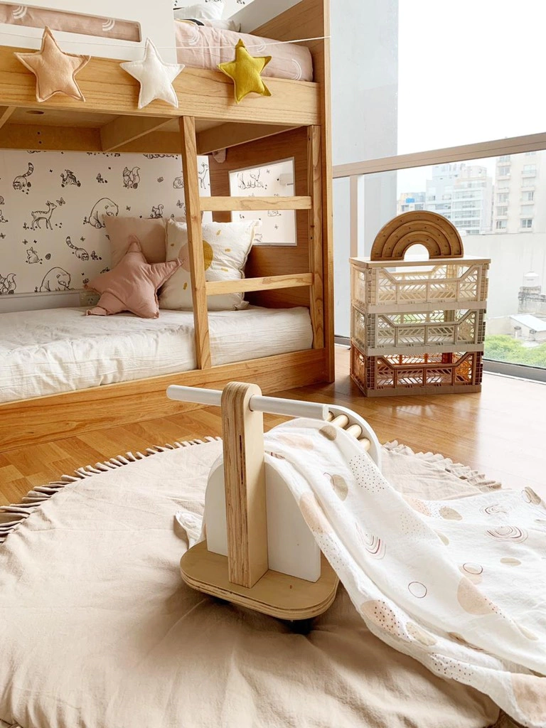 Cama cucheta para colchones de 1.90 x 80. Enchapado en paraiso y laca poliuretanica.