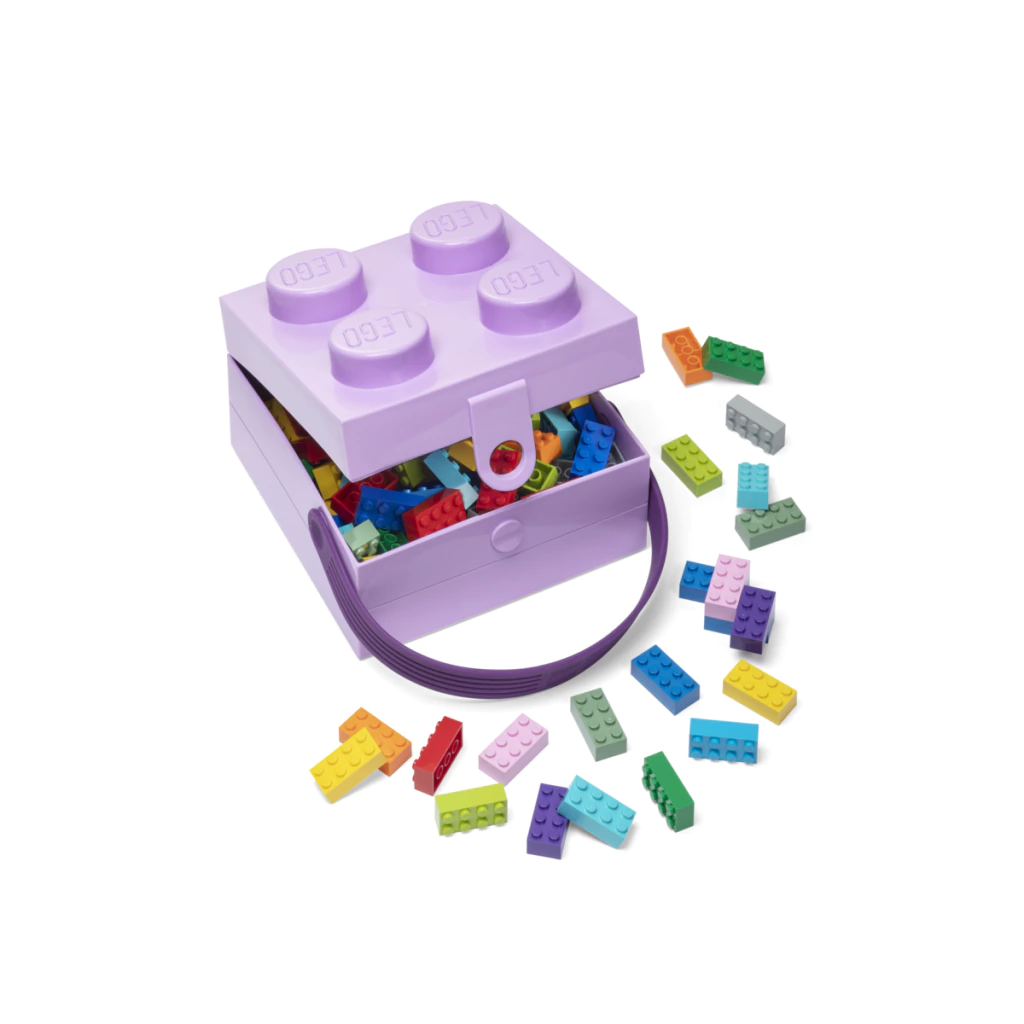 lunchera cuadrada con el clásico diseño de ladrillos LEGO® cuenta con un asa de silicona suave para facilitar el transporte.