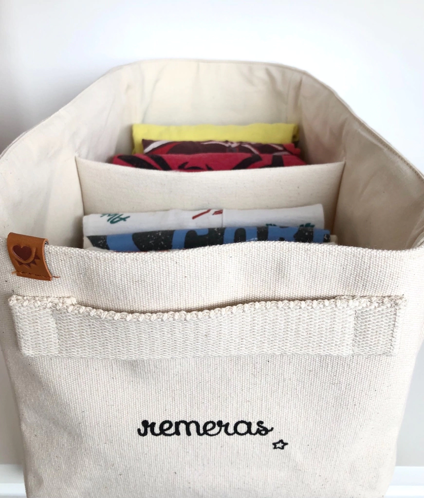 organizadores de ropa de lona con doble forreria de lienzo, manija de algodon y una divisio. medidas: 18cm de alto x 22 de frente x 36 cm de profundidad. Atencion: todos nuestros productos son por pedido. pueden tener una demora de aprox 25 dias. consultar stock para entrega inmediata antes de comprar.