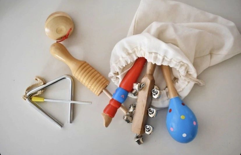 El Kit de 4 Instrumentos Musicales incluye:maraca de madera pintada